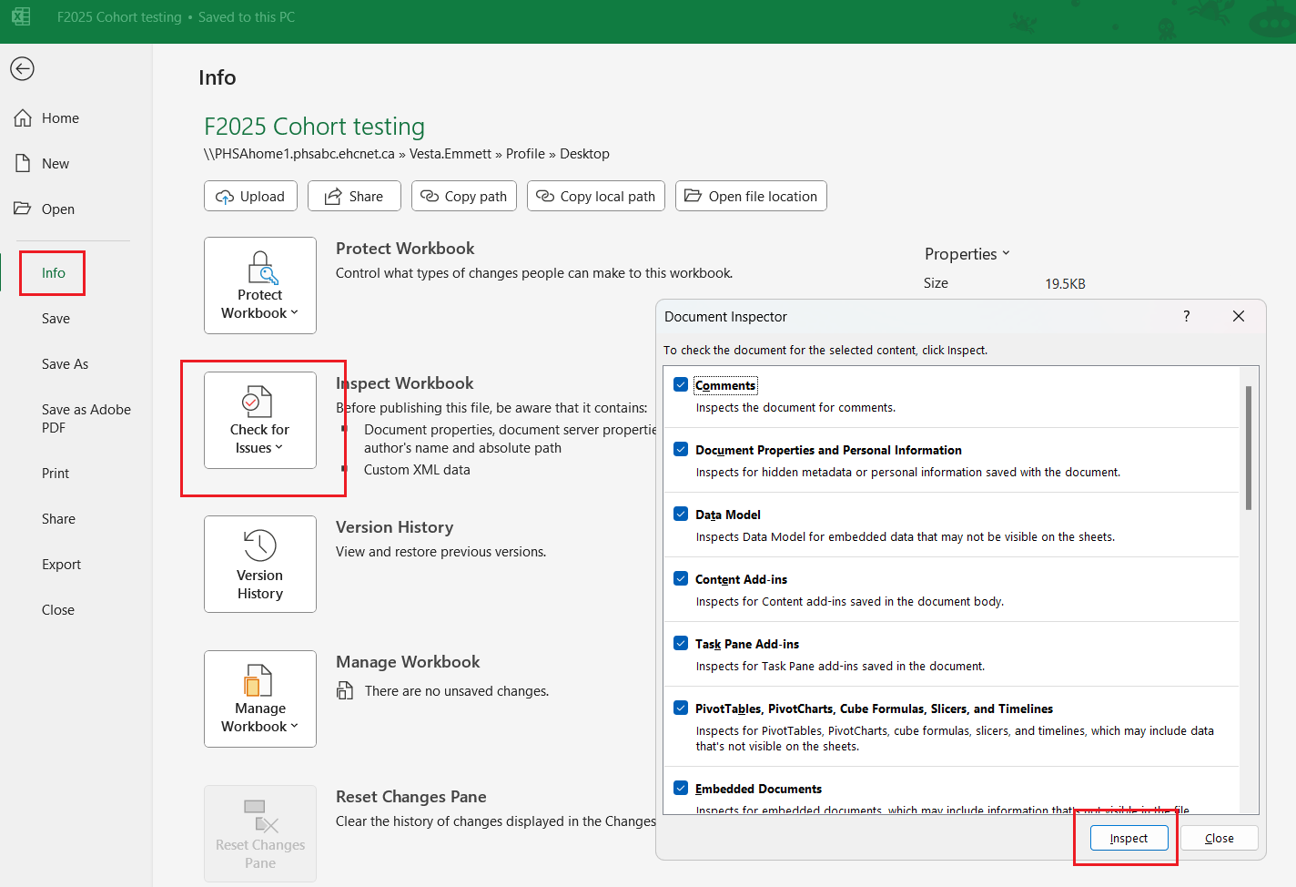 Warning: Could not open the specified spreadsheet: Object reference not set to an instance of an object. If you receive this warning message when clicking Upload File, it is related to your version of excel not being compatible with HSPnet. You will need to update your file in order to proceed as follows:
